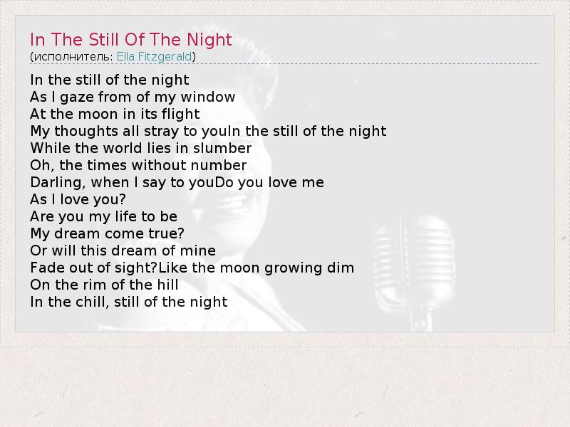 А как ты думаешь, о чем песня "In The Still Of The Night" ?