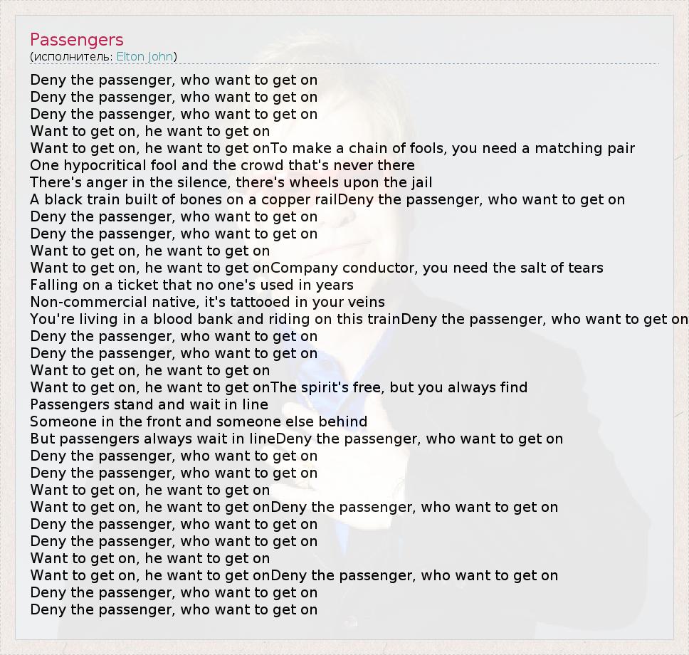 You're living in a blood bank and riding on this trainDeny the passenger, who want to get on