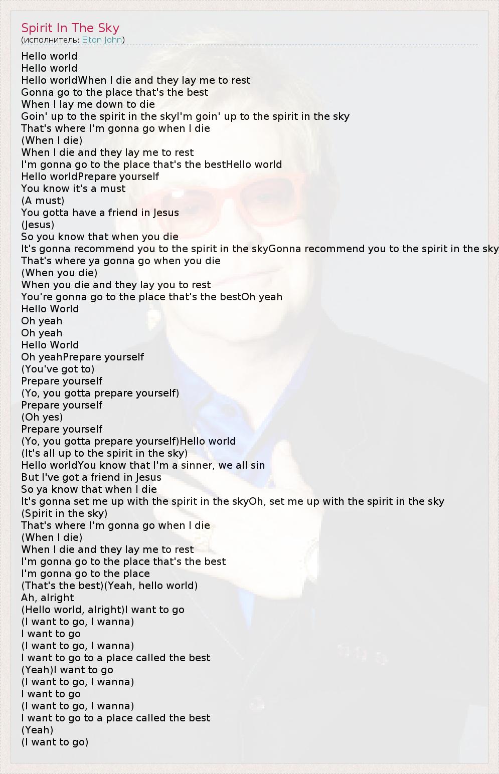 А как ты думаешь, о чем песня "Spirit In The Sky" ?