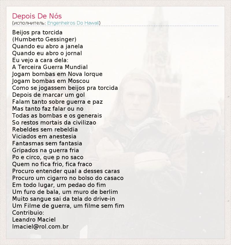 А как ты думаешь, о чем песня "Depois De Nós" ?