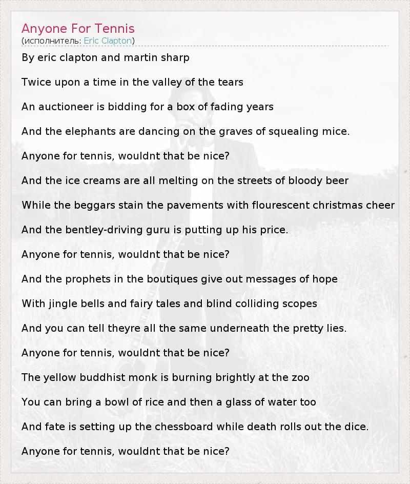 А как ты думаешь, о чем песня "Anyone For Tennis" ?