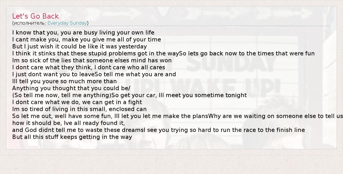 А как ты думаешь, о чем песня "Let's Go Back" ?