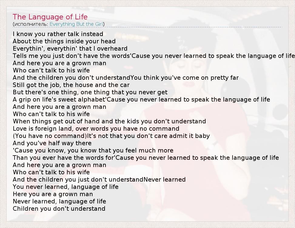 А как ты думаешь, о чем песня "The Language of Life" ?