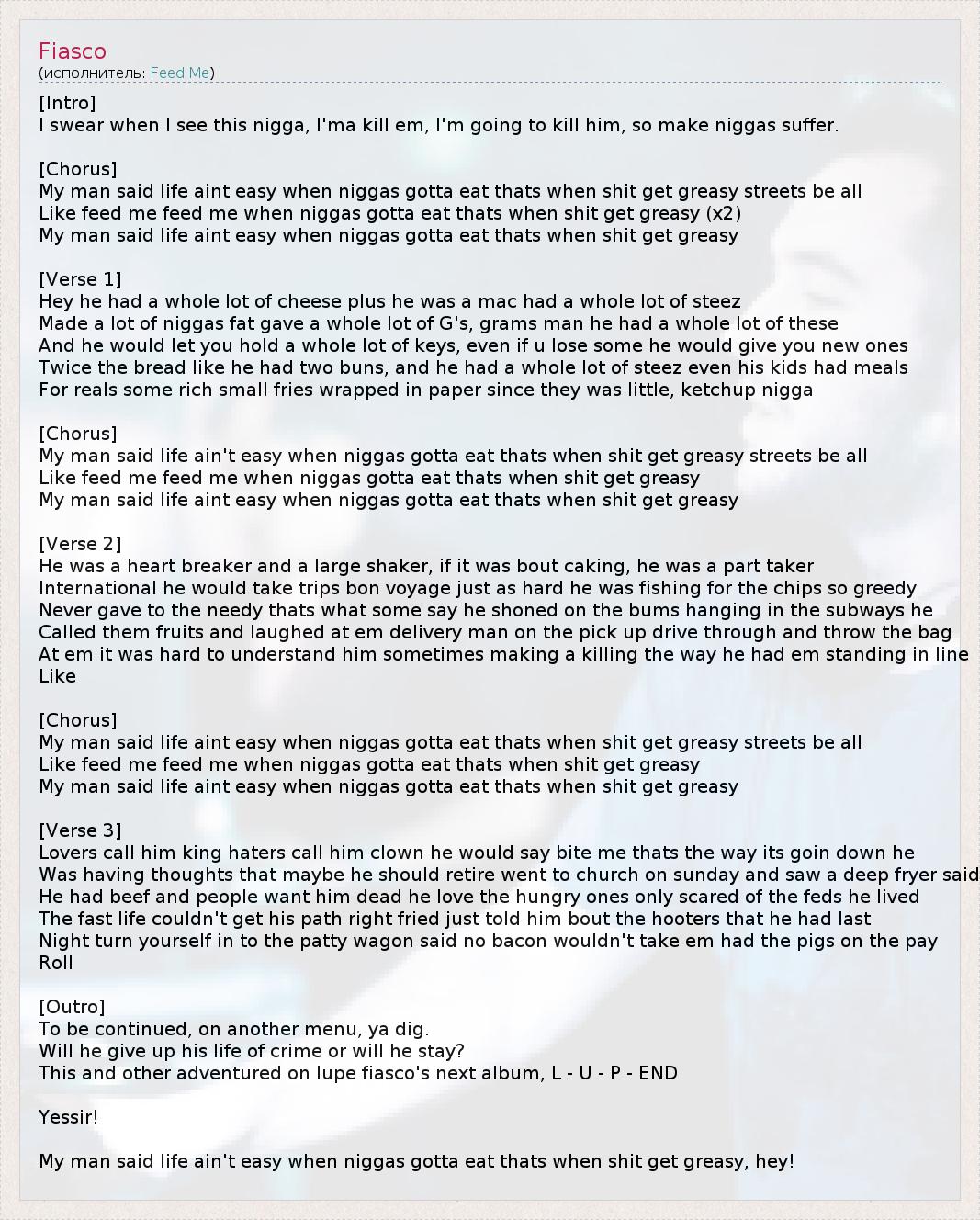 Like feed me feed me when niggas gotta eat thats when shit get greasy