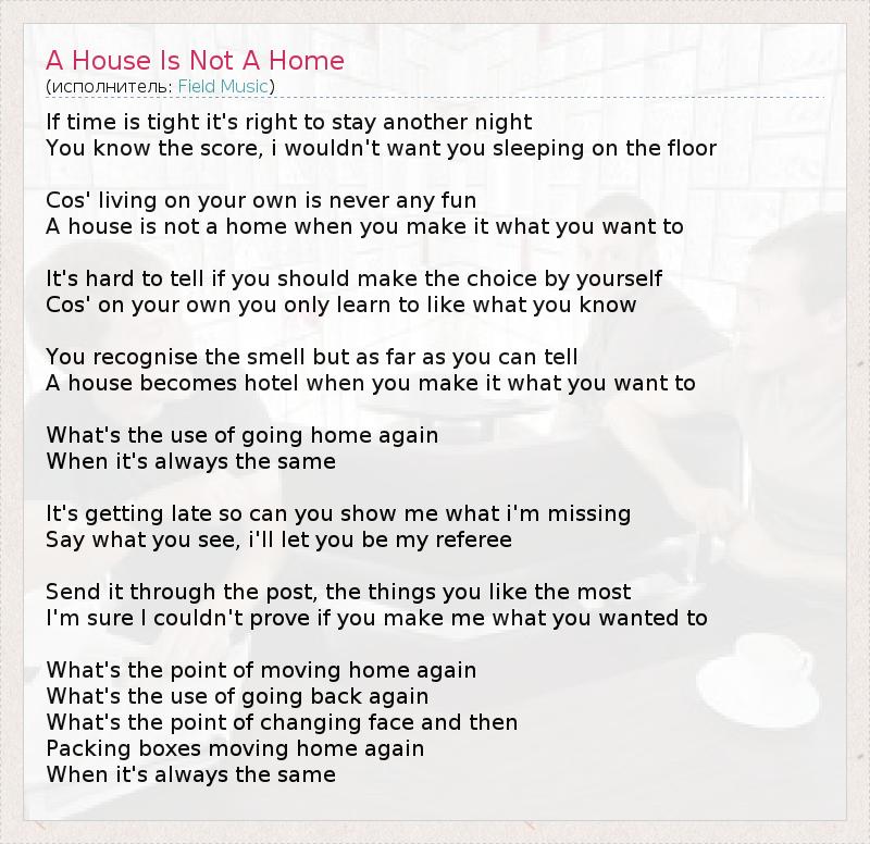 А как ты думаешь, о чем песня "A House Is Not A Home" ?
