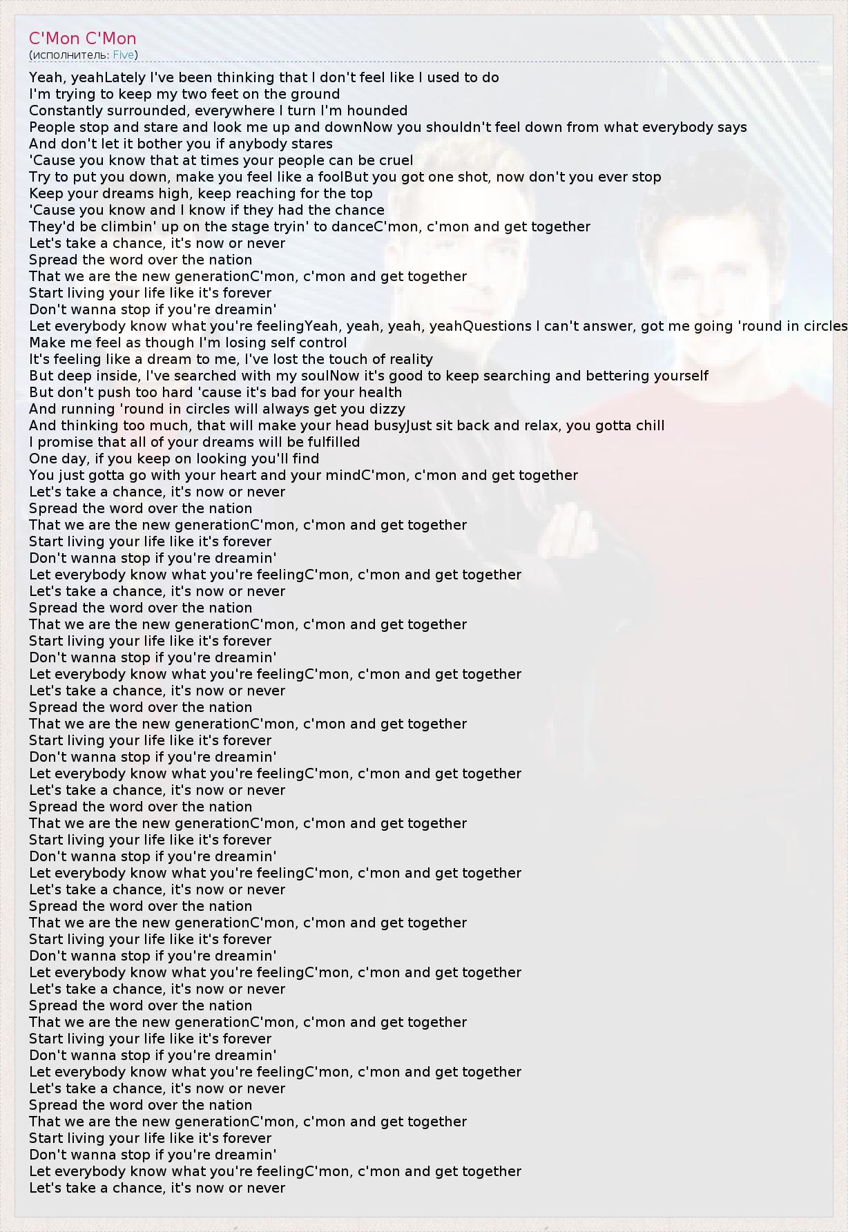 А как ты думаешь, о чем песня "C'Mon C'Mon" ?