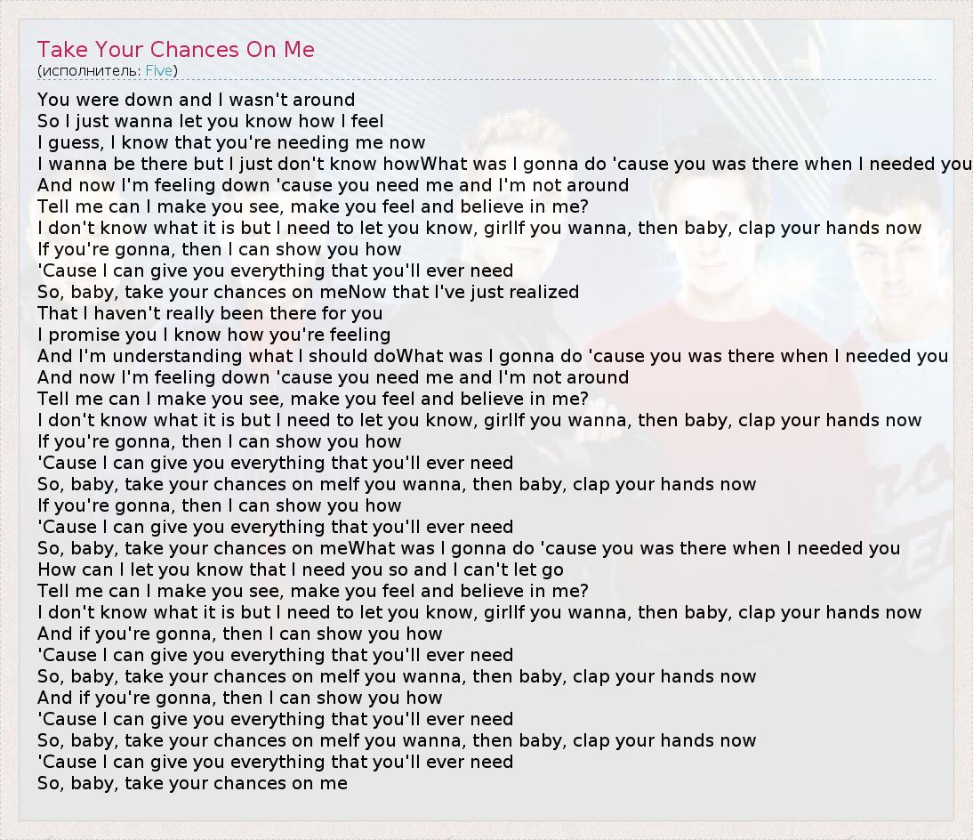 ГлавнаяИсполнителиFiveTake Your Chances On Me