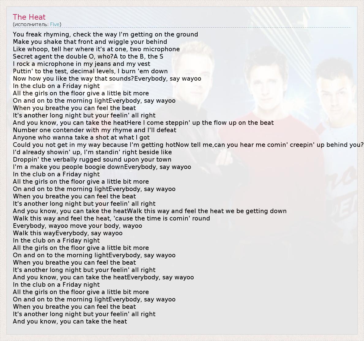 А как ты думаешь, о чем песня "The Heat" ?