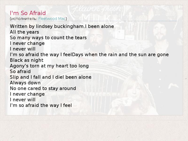 А как ты думаешь, о чем песня "I'm So Afraid" ?