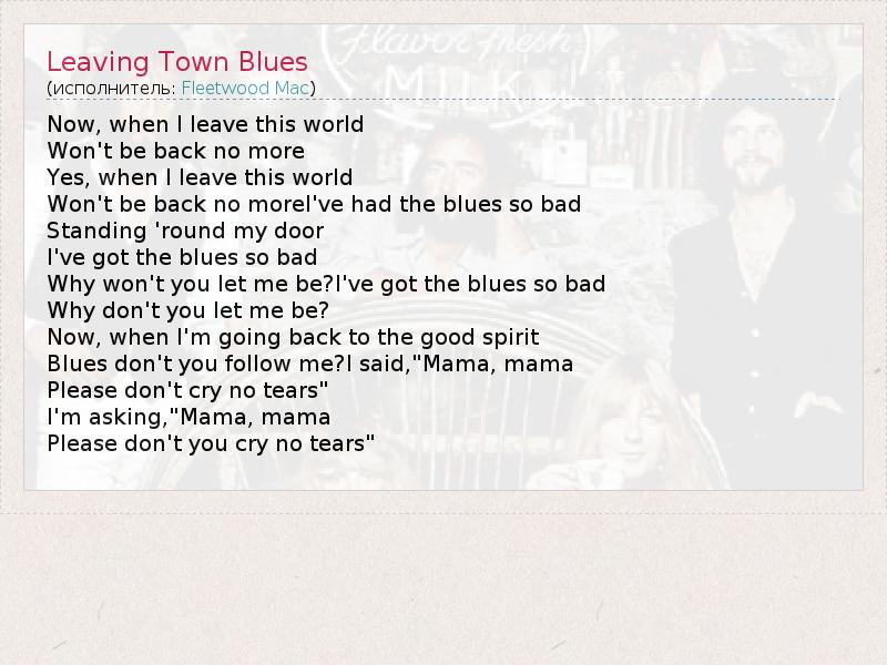 А как ты думаешь, о чем песня "Leaving Town Blues" ?