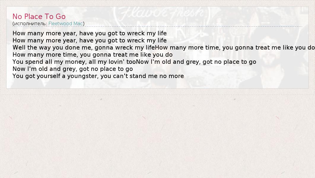 А как ты думаешь, о чем песня "No Place To Go" ?