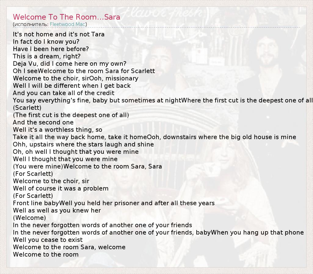 ГлавнаяИсполнителиFleetwood MacWelcome To The Room...Sara
