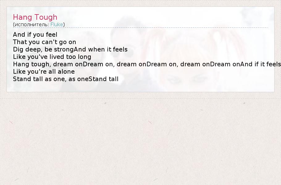 А как ты думаешь, о чем песня "Hang Tough" ?
