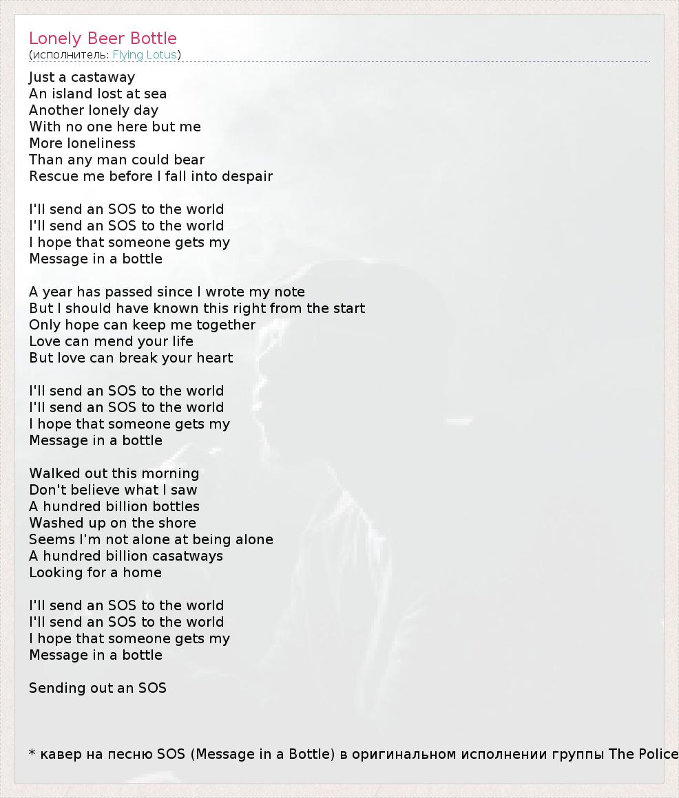 А как ты думаешь, о чем песня "Lonely Beer Bottle" ?