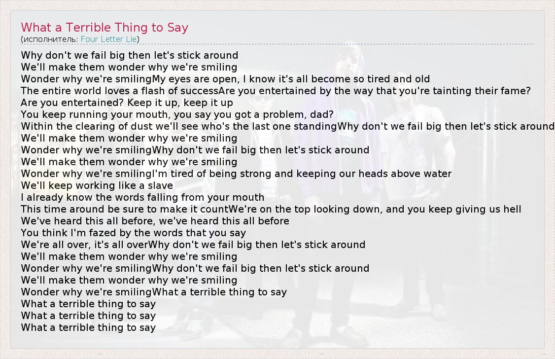 ГлавнаяИсполнителиFour Letter LieWhat a Terrible Thing to Say