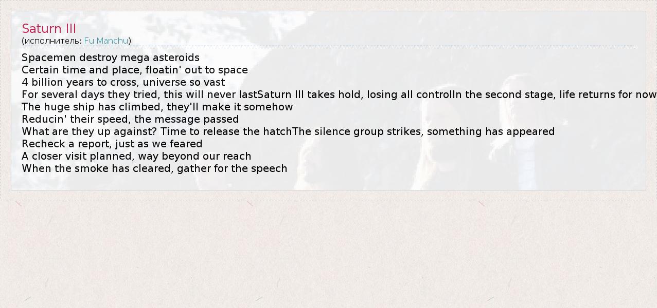 А как ты думаешь, о чем песня "Saturn III" ?