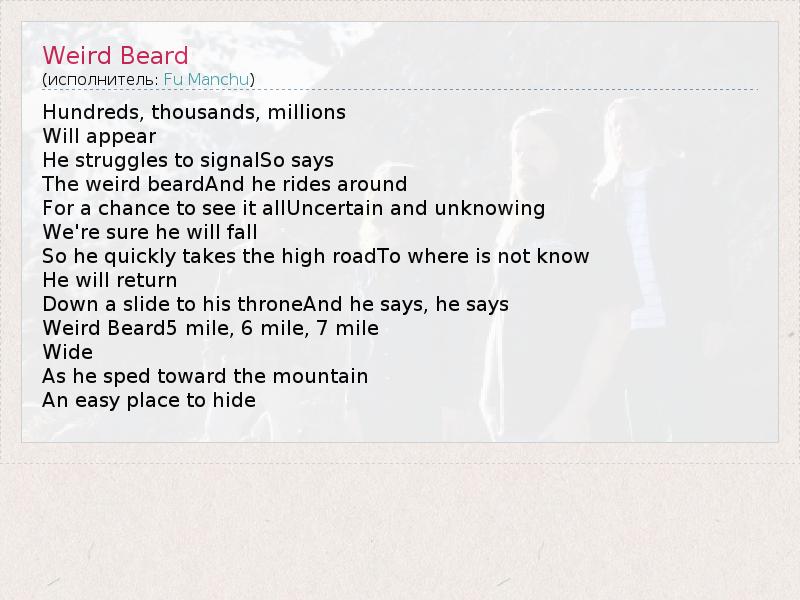 А как ты думаешь, о чем песня "Weird Beard" ?