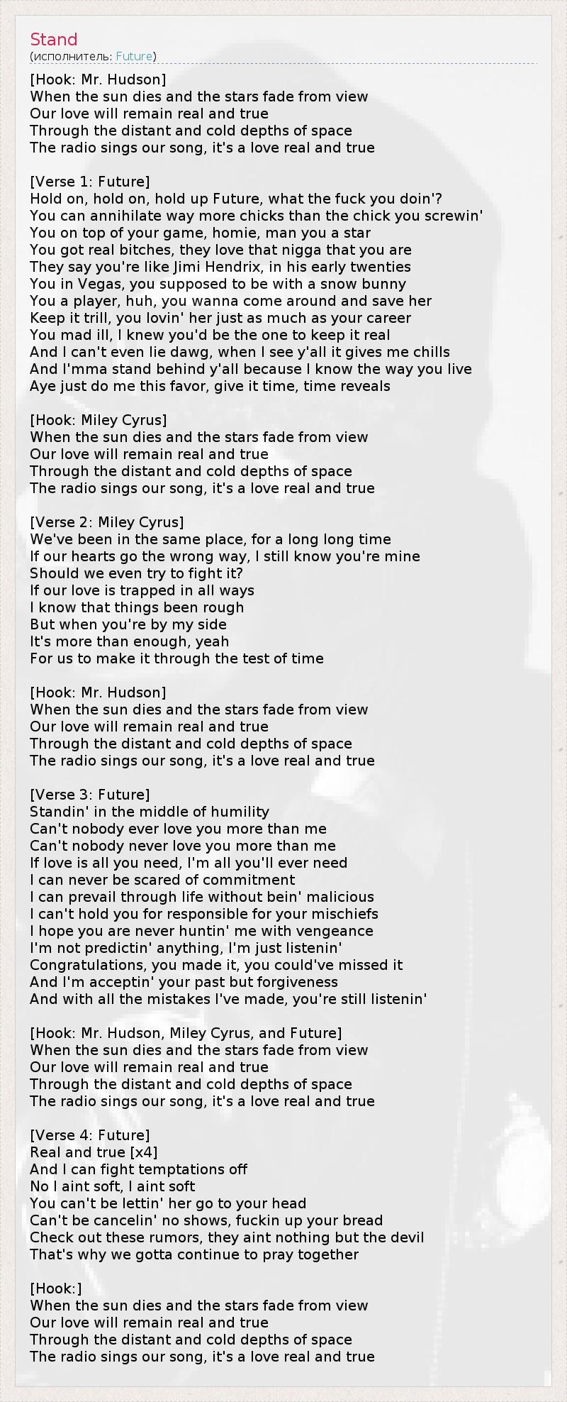 [Хук: Mr. Hudson, Miley Cyrus, and Future]