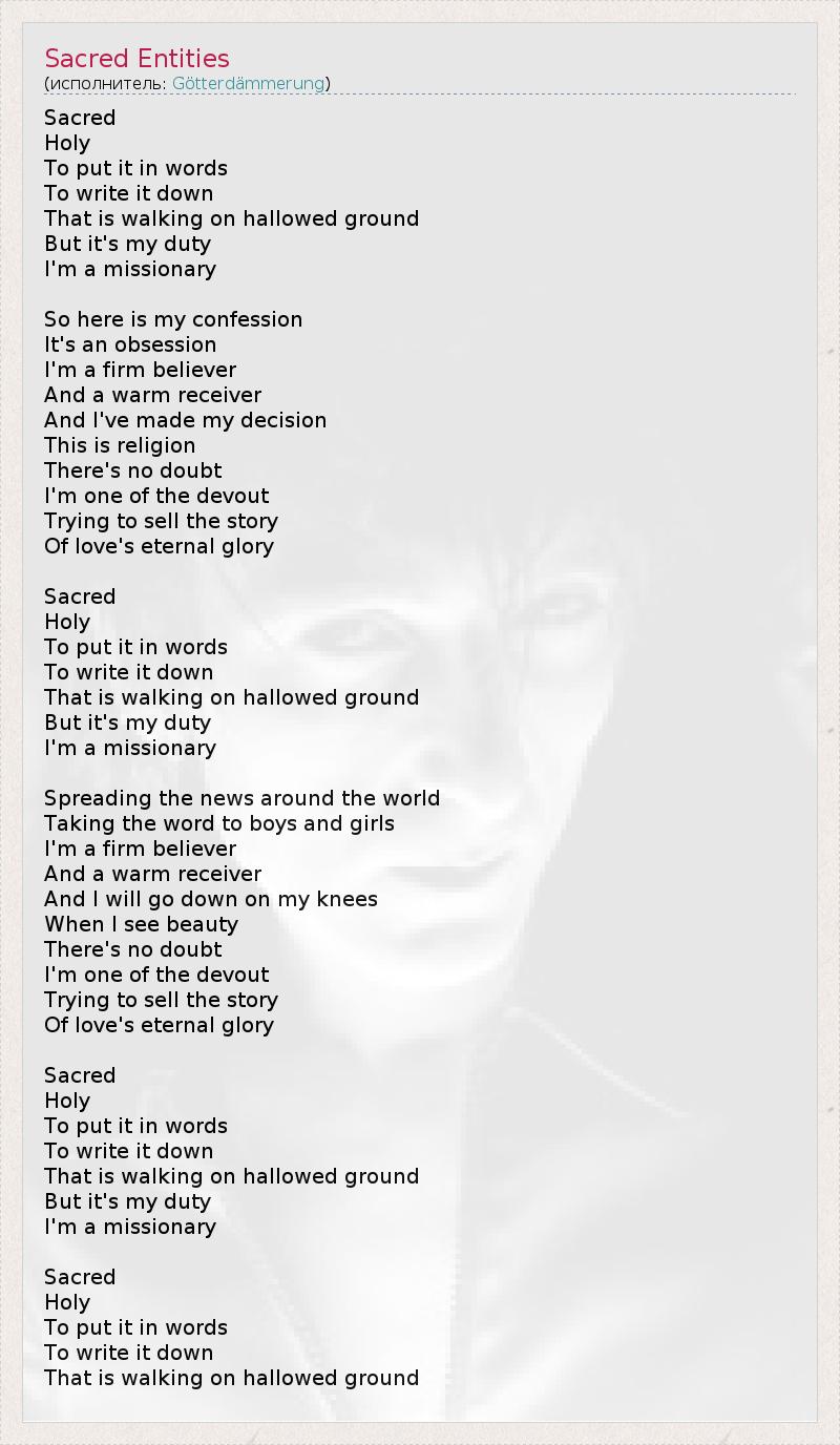 А как ты думаешь, о чем песня "Sacred Entities" ?