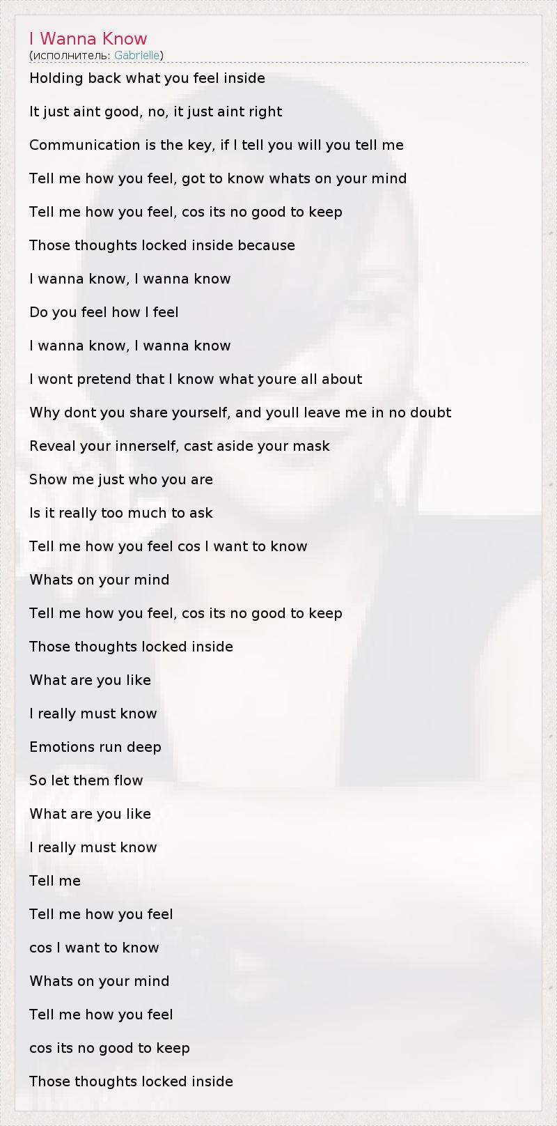 А как ты думаешь, о чем песня "I Wanna Know" ?