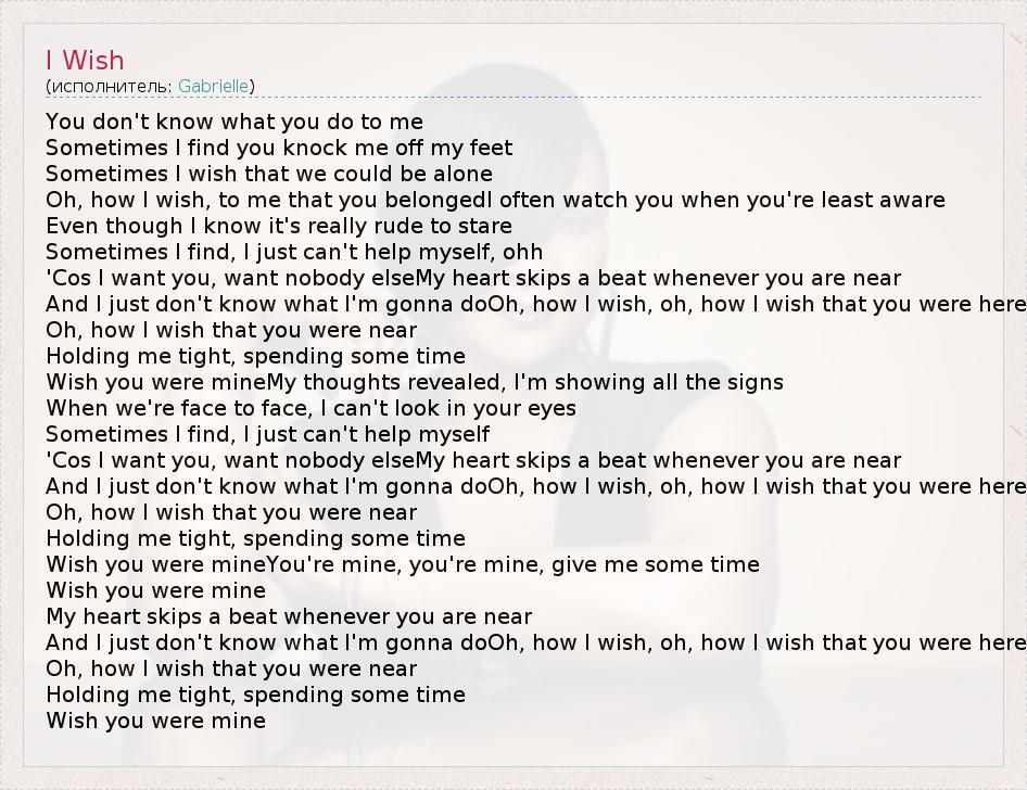 'Cos I want you, want nobody elseMy heart skips a beat whenever you are near