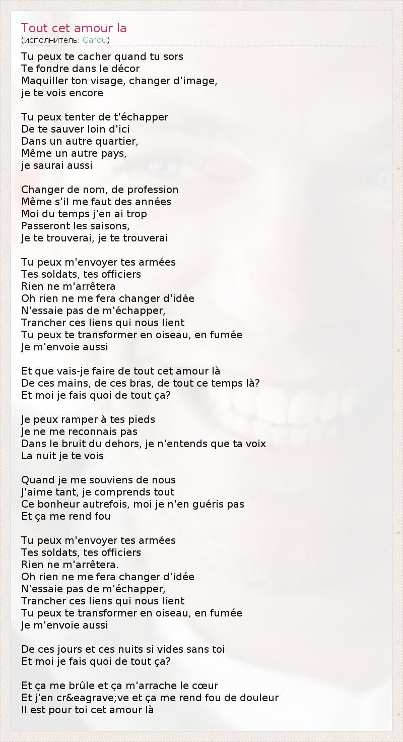 А как ты думаешь, о чем песня "Tout cet amour la" ?