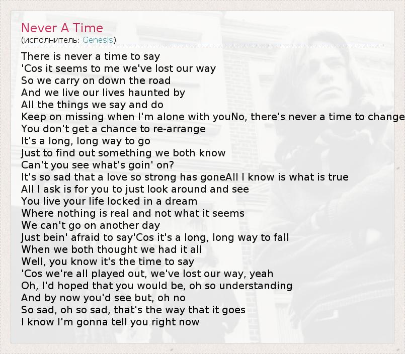 А как ты думаешь, о чем песня "Never A Time" ?