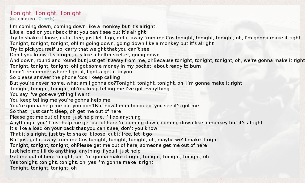 ГлавнаяИсполнителиGenesisTonight, Tonight, Tonight