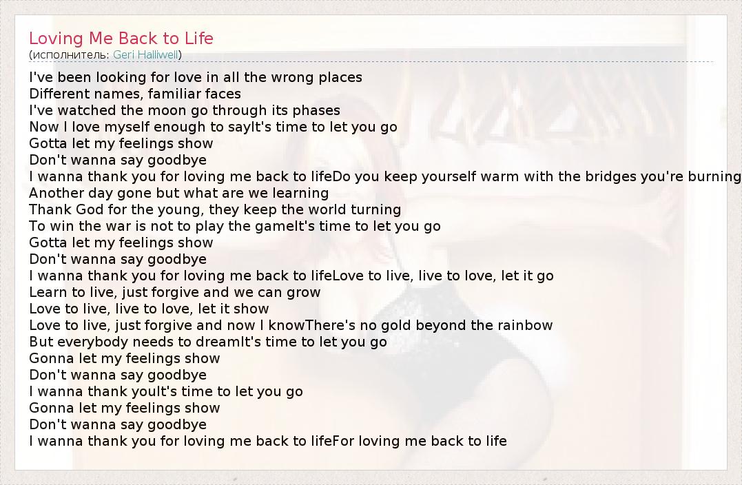 I wanna thank you for loving me back to lifeLove to live, live to love, let it go