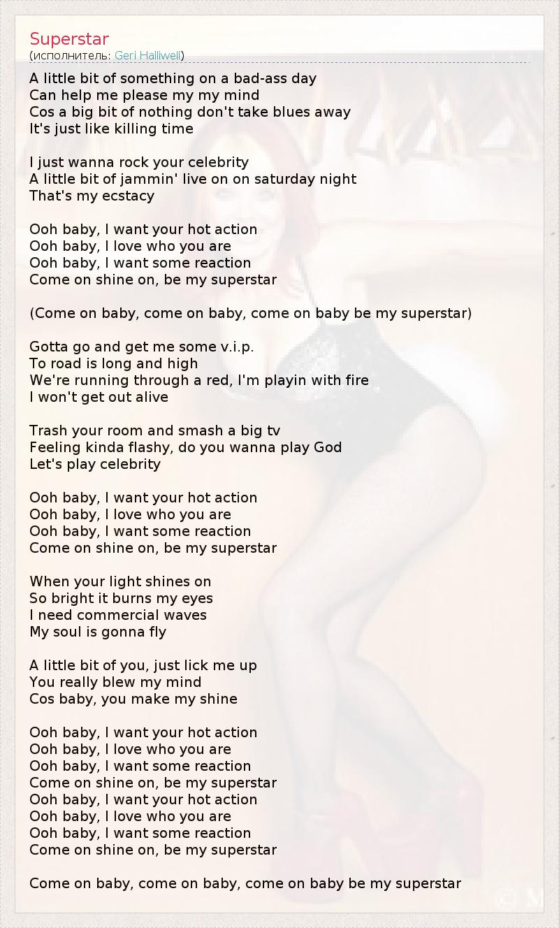 Это интересно:Джери Холливелл родилась 6 августа 1972 года в Лондоне. Наполовину испанка, наполовину шведка — в шутку она называла себя «дворняжкой». Джери выросла на записях Мадонны, Майкла Джексона и ABBA. Большое влияние на нее также оказали фильмы и музыка, которыми увлекался ее довольно пожилой отец (в год рождения дочери ему уже было 50 лет): Джуди Гарланд, Мэрилин Монро, Ширли Бейси. Джери получила... продолжение