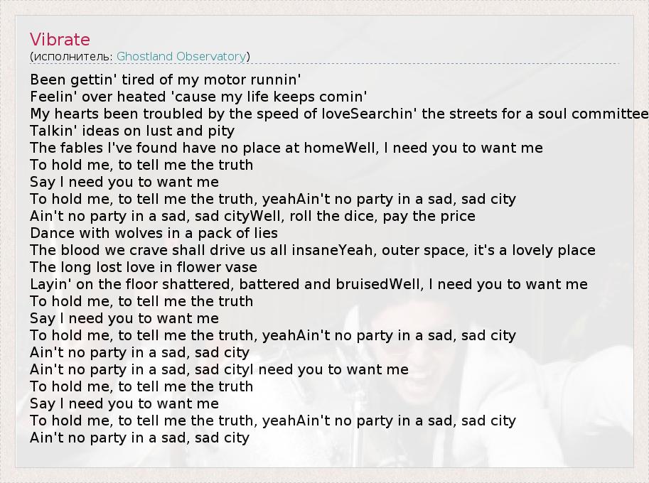 А как ты думаешь, о чем песня "Vibrate" ?