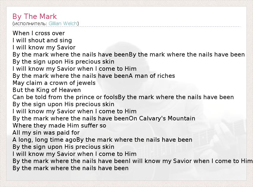 By the mark where the nails have beenI will know my Savior when I come to Him