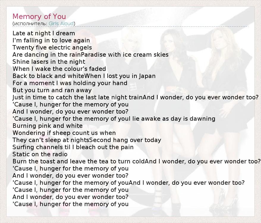 'Cause I, hunger for the memory of youAnd I wonder, do you ever wonder too?