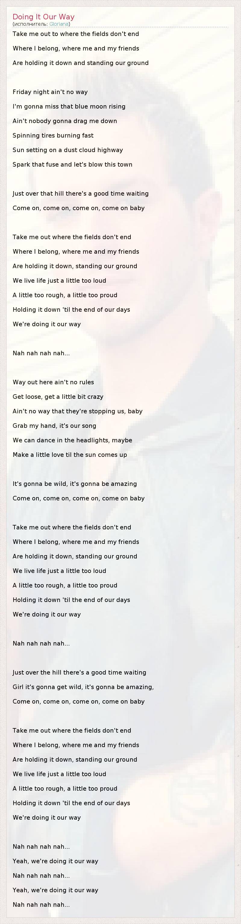 А как ты думаешь, о чем песня "Doing It Our Way" ?
