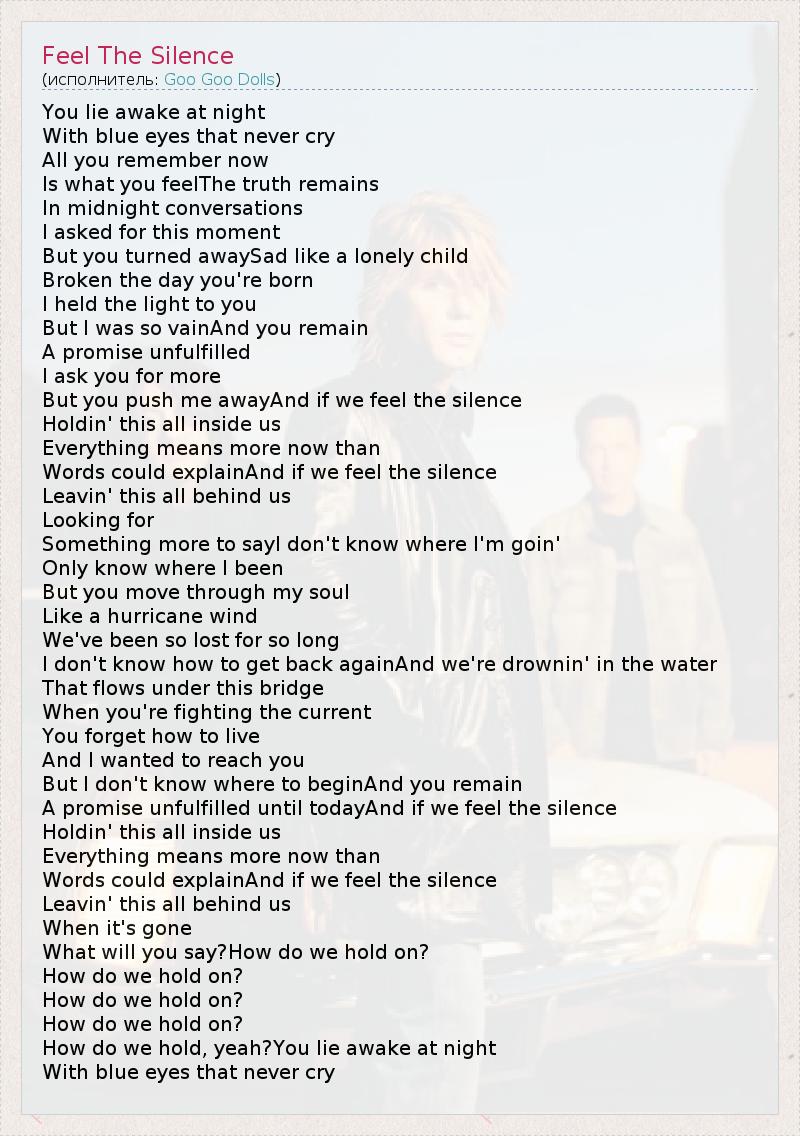 А как ты думаешь, о чем песня "Feel The Silence" ?