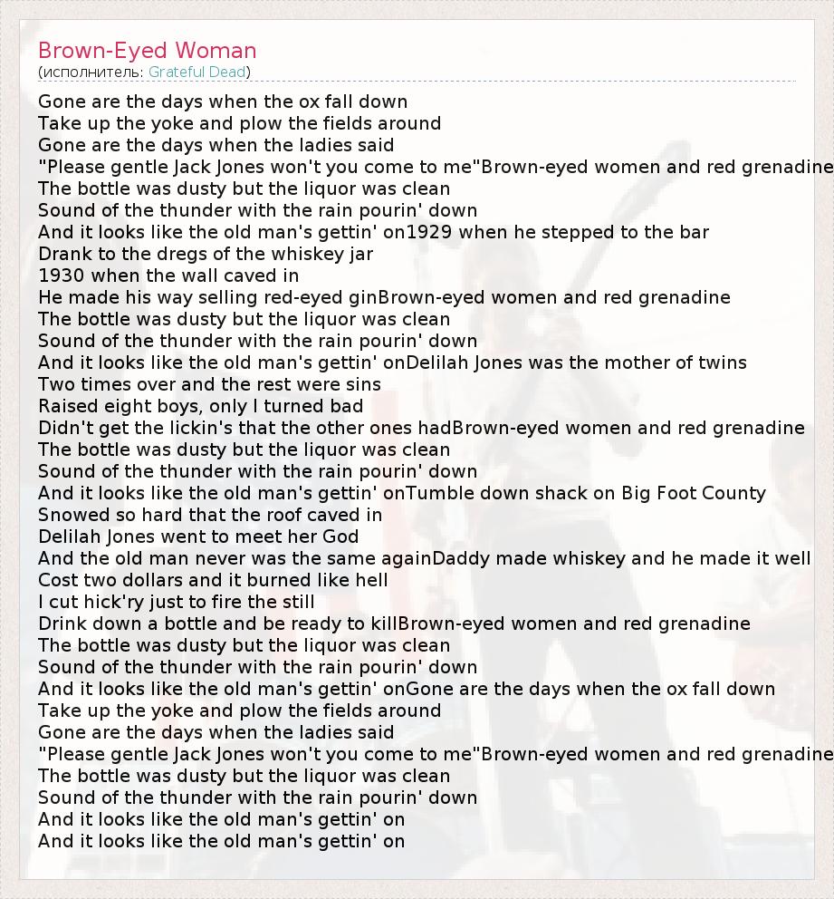 А как ты думаешь, о чем песня "Brown-Eyed Woman" ?