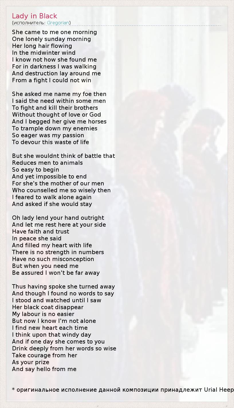 А как ты думаешь, о чем песня "Lady in Black" ?
