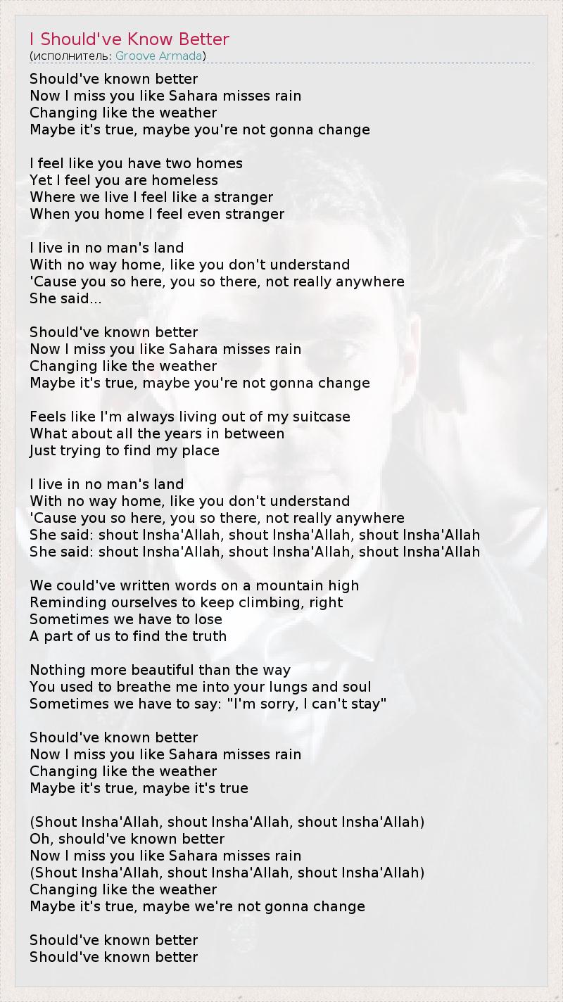 А как ты думаешь, о чем песня "I Should've Know Better" ?
