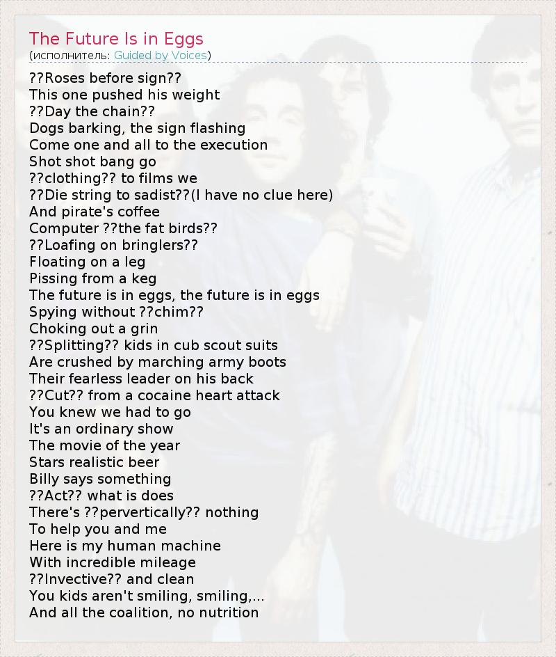 А как ты думаешь, о чем песня "The Future Is in Eggs" ?