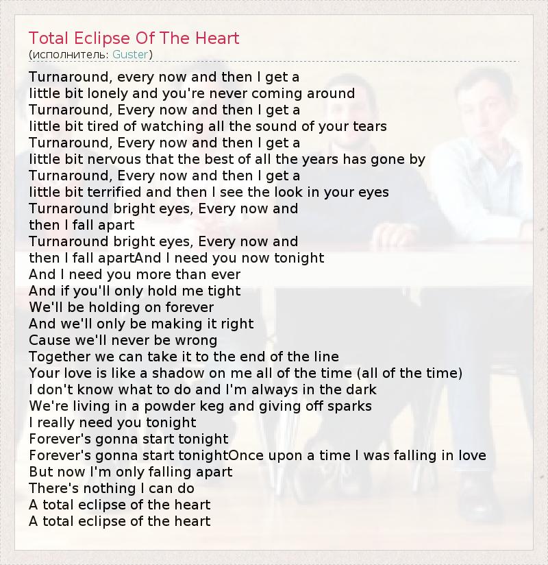 ГлавнаяИсполнителиGusterTotal Eclipse Of The Heart