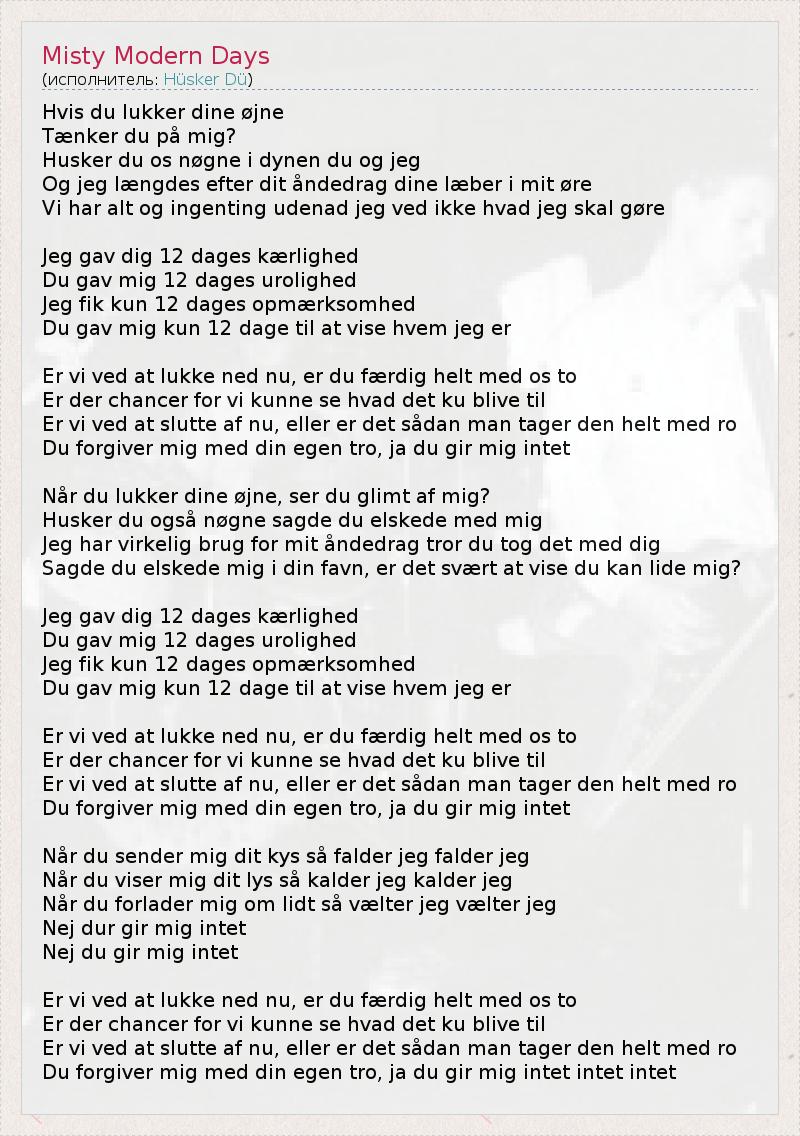 А как ты думаешь, о чем песня "Misty Modern Days" ?