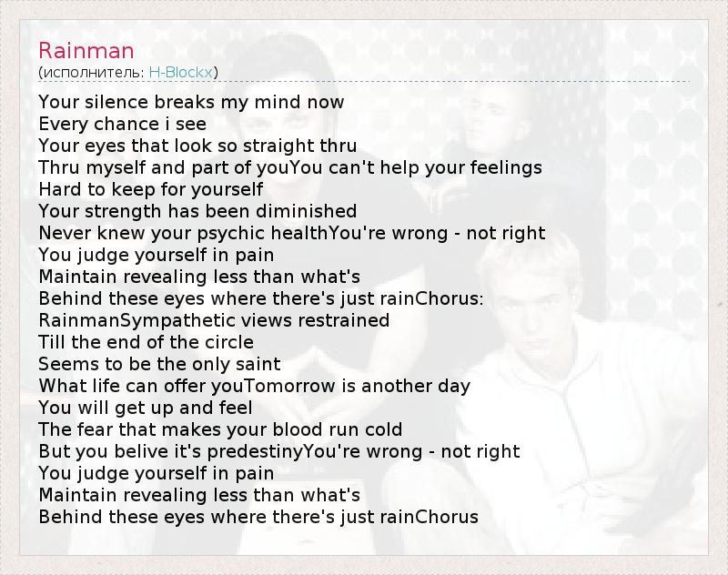 А как ты думаешь, о чем песня "Rainman" ?