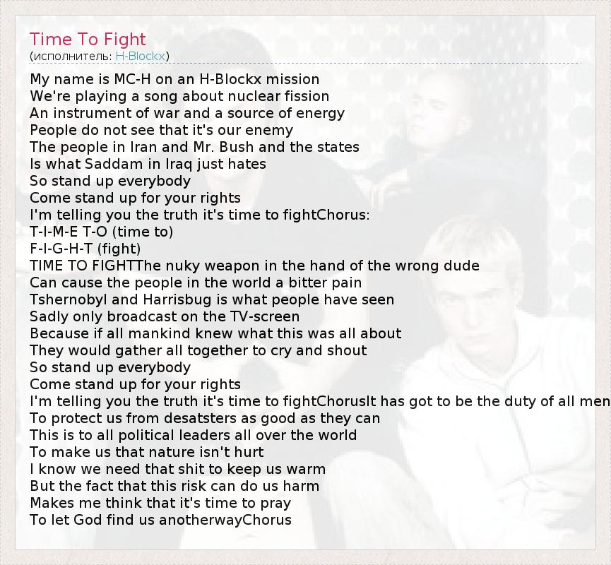 А как ты думаешь, о чем песня "Time To Fight" ?