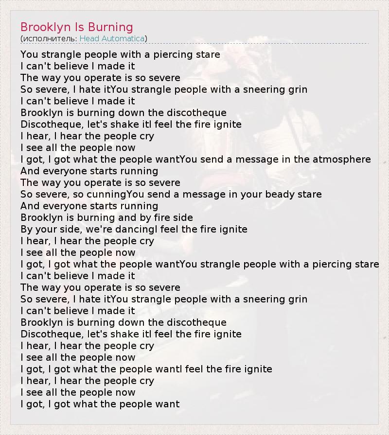 А как ты думаешь, о чем песня "Brooklyn Is Burning" ?