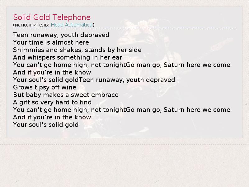 А как ты думаешь, о чем песня "Solid Gold Telephone" ?