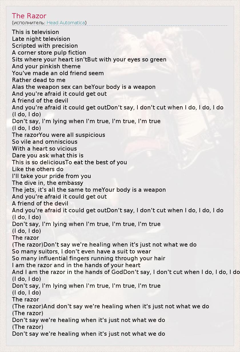 And I am the razor in the hands of GodDon't say, I don't cut when I do, I do, I do