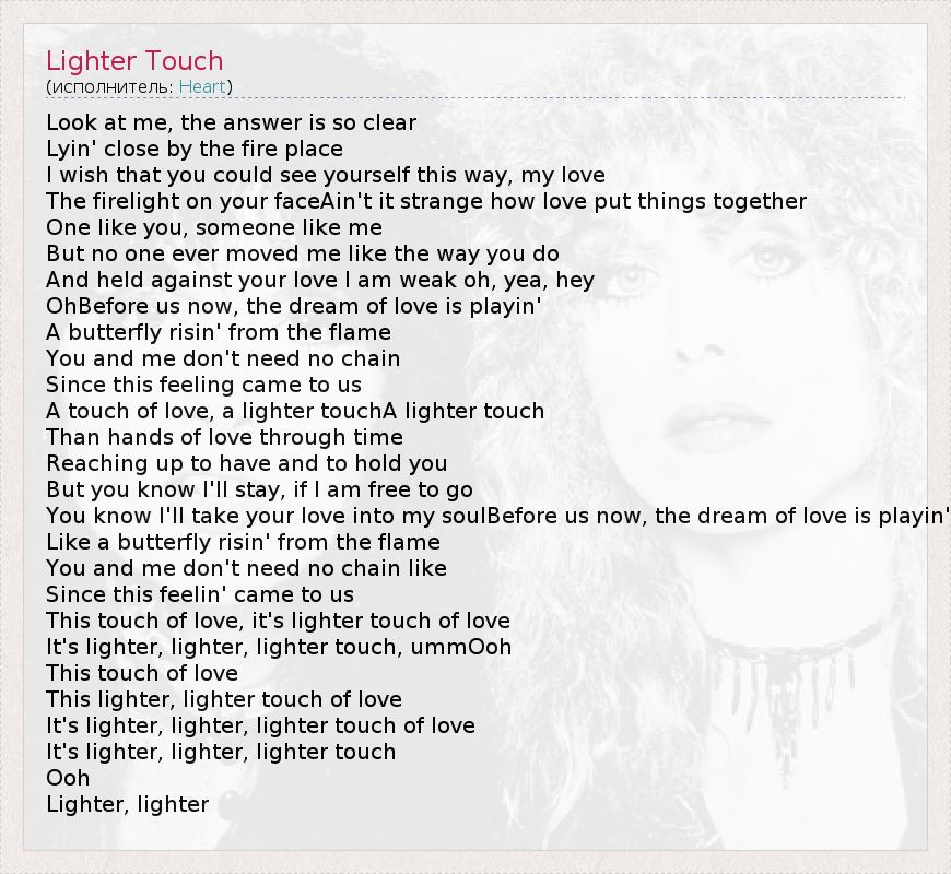 А как ты думаешь, о чем песня "Lighter Touch" ?