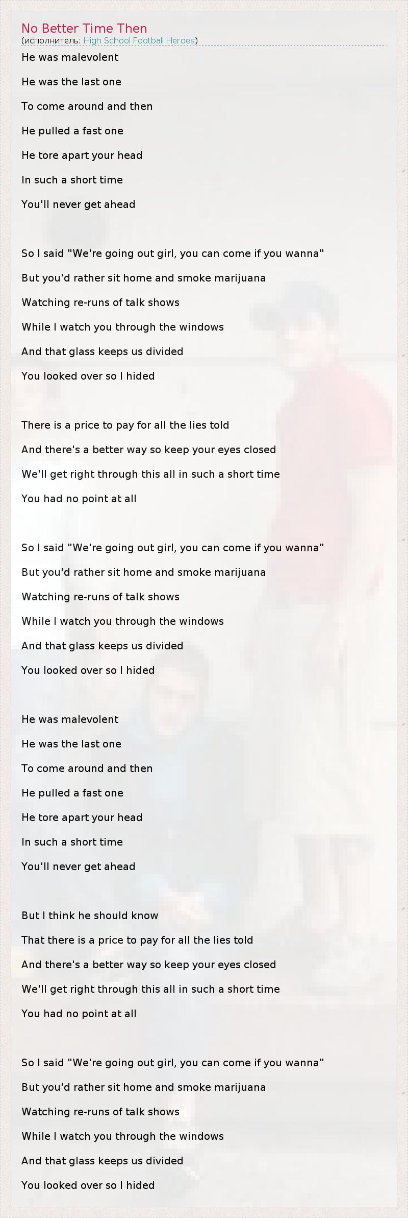 А как ты думаешь, о чем песня "No Better Time Then" ?