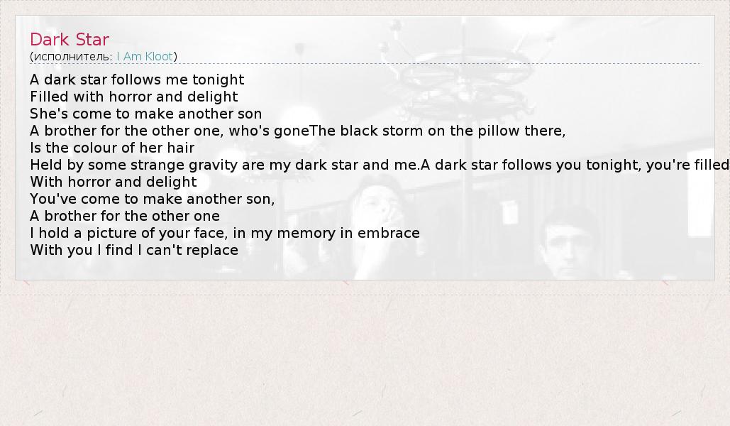 А как ты думаешь, о чем песня "Dark Star" ?