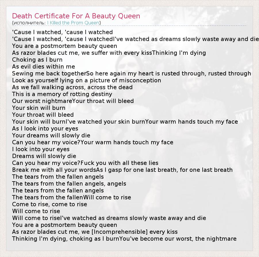 ГлавнаяИсполнителиI Killed the Prom QueenDeath Certificate For A Beauty Queen